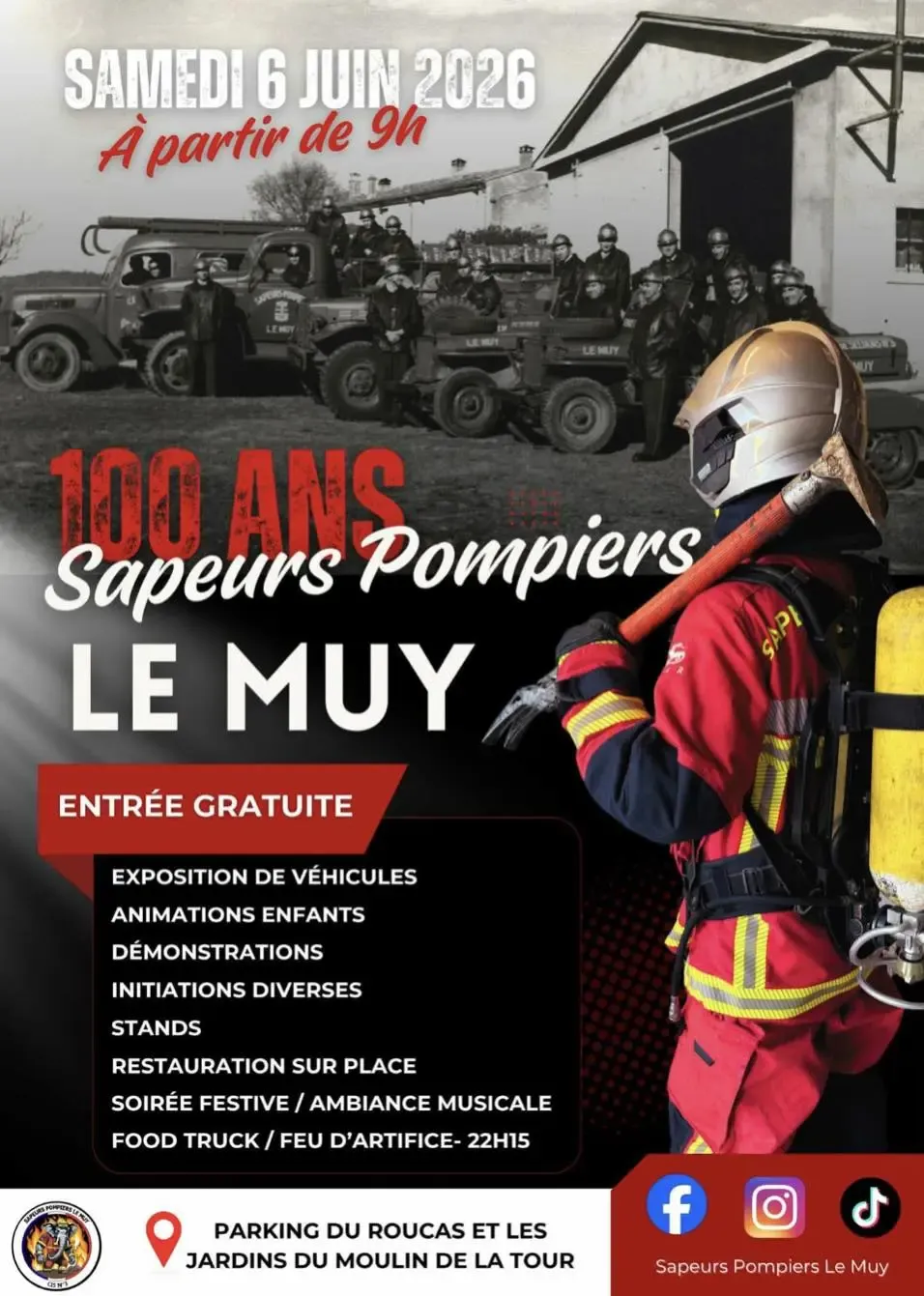 Venez fêter dignement, avec vos soldats du feu, les 100 ans des sapeurs pompiers Le Muy !