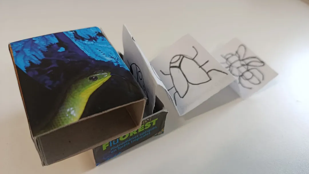 Customisez votre petite boîte d’allumettes et dessinez sa collection d’insectes pour reproduire un cabinet de curiosité miniature.