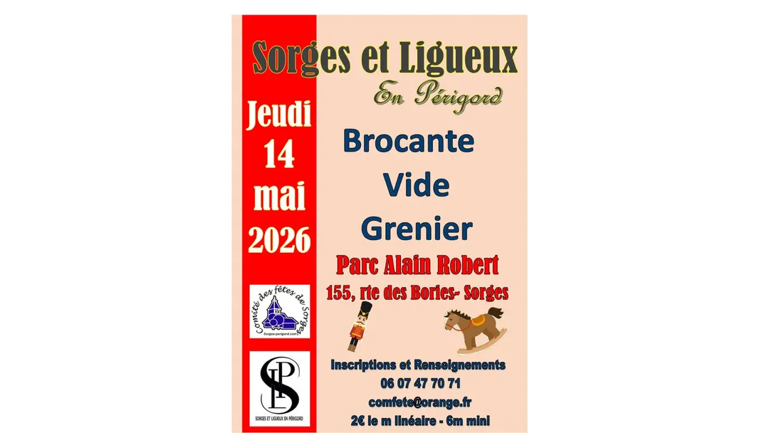 Vendez , achetez , chinez dans une ambiance conviviale et festive à l'occasion de la Brocante vide-grenier organisée au Parc Alain Robert à Sorges par le comité des fêtes.