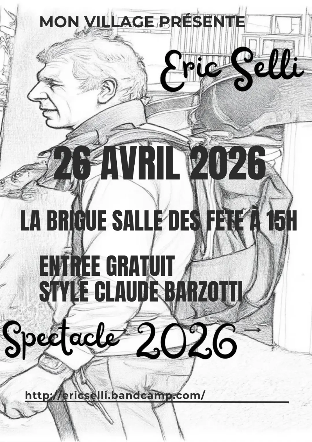 Venez nombreux écouter le chanteur Eric Selli, (influence Claude BARZOTTI) le 26 avril 2026 à la Salle des Fêtes de La Brigue