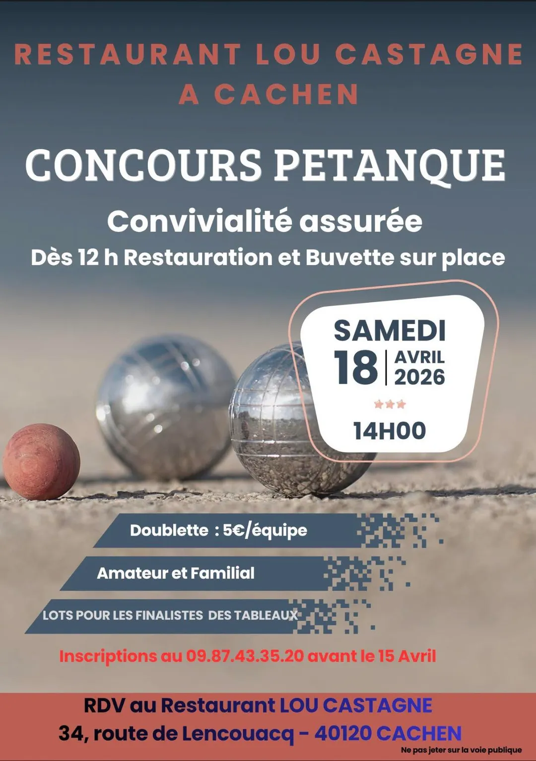 Alors après s'être régalé au restaurant Lou Castagné, direction le parking pour un concours de pétanque en doublette !