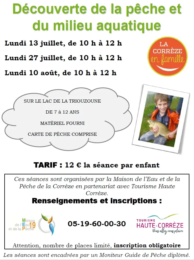 Les poissons d’eau douce n’auront plus de secrets pour vous ! Au programme : découvrir les milieux aquatiques par la pratique d'une activité de loisir. Déroulement : découverte du fonctionnement des écosystèmes aquatiques, apprentissage de la gestuelle de la pêche au coup et pêche au coup des poissons blancs.