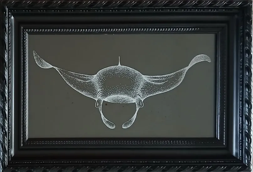 Cash (de son nom complet Claire Hemmi), fait tout à base d’eau : à la façon des pointillistes, c’est l’aquarelle qu’elle a choisi comme peinture, pour sa capacité à rester transparente. Elle a aussi choisi de se détourner des toiles classiques pour expérimenter d’autres supports : elle a d’abord travaillé sur du bois ou du métal de bateaux, ramassés en bord de Rance. Et c’est aujourd’hui sur d’anciennes cartes marines que ses sujets s’épanouissent. Sujets qui n’échappent pas à la règle : c’est bien des créatures marines, de l’étoile de mer à l’hippocampe, qui nagent sur le papier. Ce sont ses Marins d’Art.