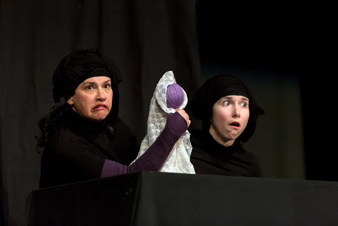 Deux comédiennes vont se transformer et se mouvoir dans tous les personnages. Héritières toutes les deux d’un théâtre très corporel, leur inventivité et leur complicité joyeuse transparaissent et séduisent tous les publics.