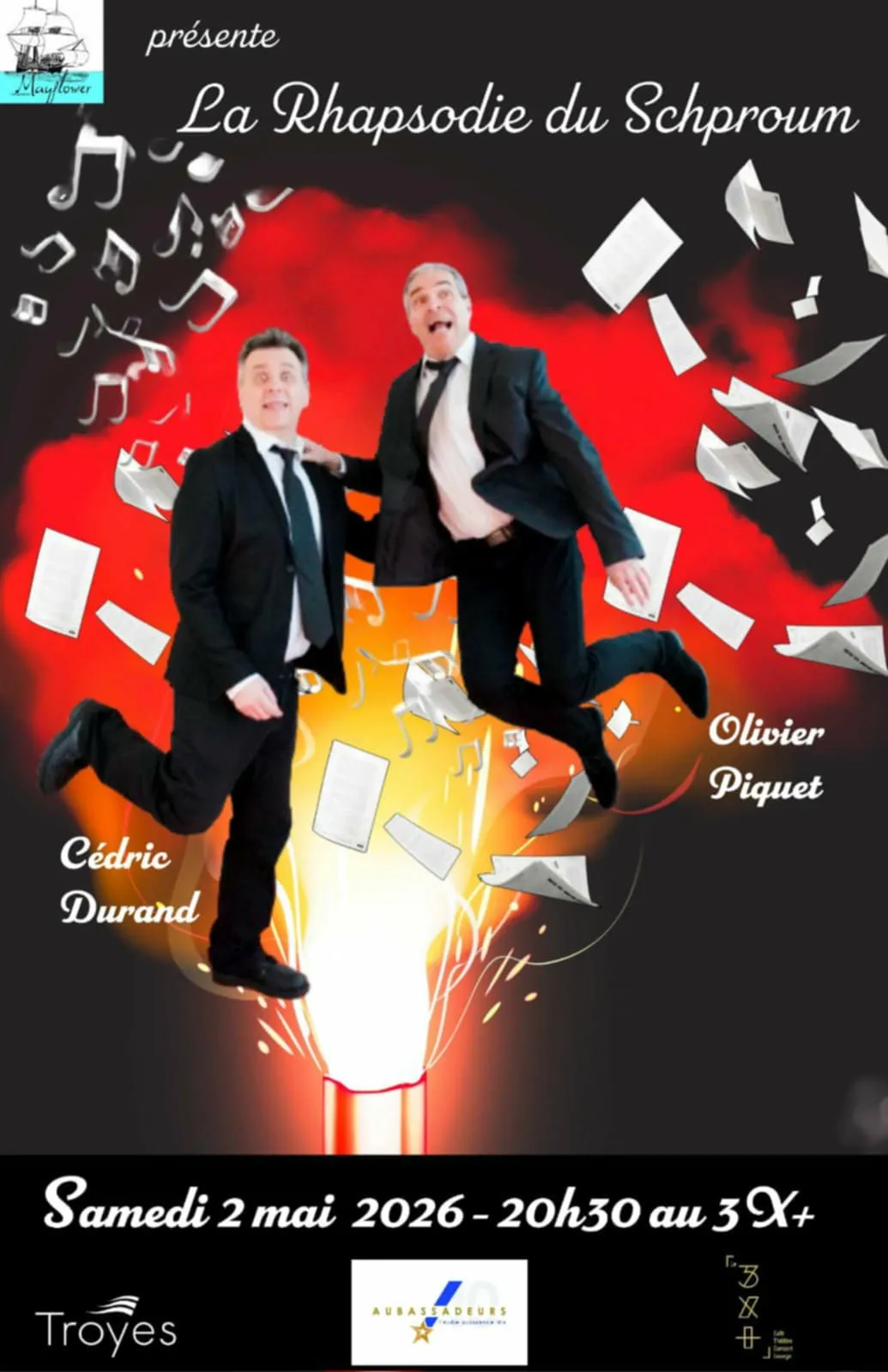Chaque jour, à 11h45 tapantes, un homme solitaire prend place au café éphémère L’IMPROBABLE. Toujours le même rituel, toujours la même table. Mais bientôt, le décor s’anime : face à lui, le serveur devient partenaire de jeu. Une singulière complicité s’installe, presque malgré eux. Et voilà que leurs histoires personnelles, entre réalité et fiction, se parent de fragments volés — saillies d’humoristes, aphorismes, refrains de chansons, dialogues de cinéma… Tout se mêle, tout se joue. La réalité vacille, la Rhapsodie du Schproum est en marche ! »