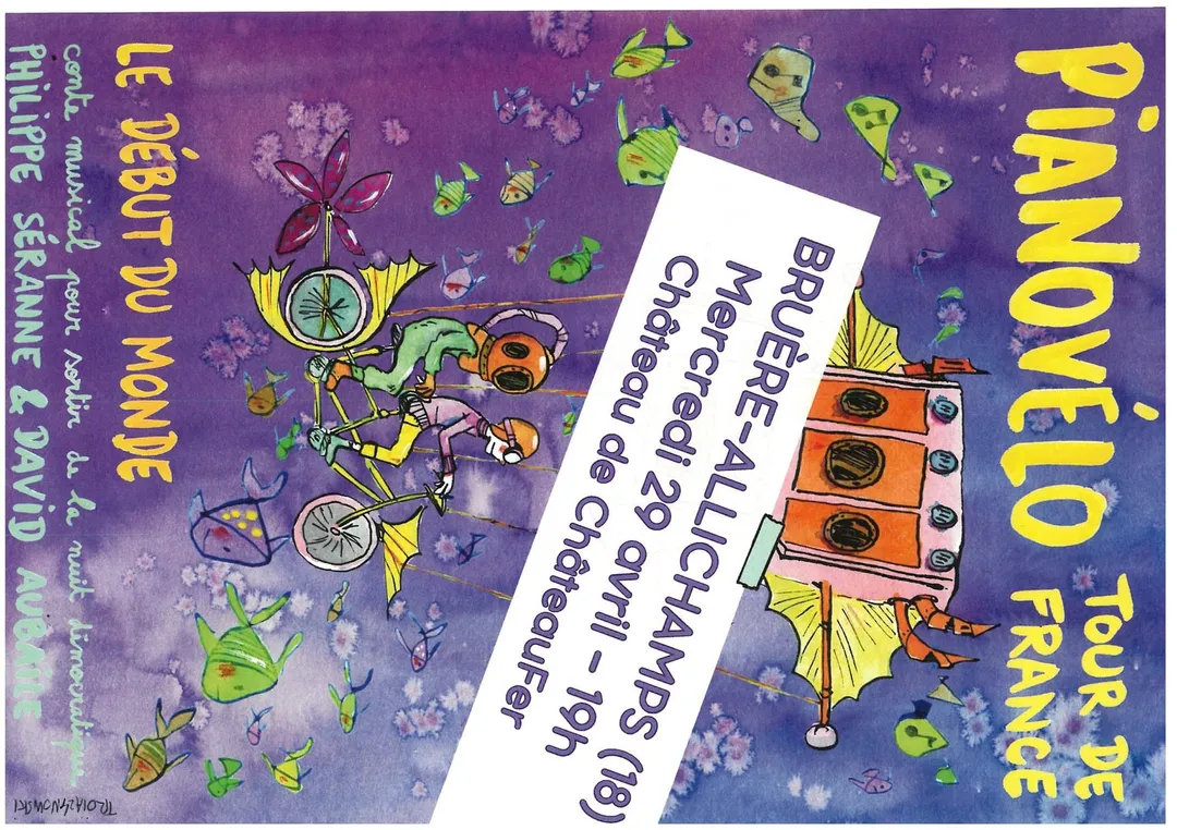 Philippe Séranne et David Aubaile font le tour de France à vélo en tractant 250kg de piano... Pour célébrer en musique les centaines de collectifs qui reprennent en main la démocratie partout en France ! Ils jouent, chantent, amusent, et l'impensable devient possible, le verbe enflamme les consciences et la virtuosité déchaîne les imaginaires. Des paroles fortes qui sonnent juste, la joie qui emporte le désespoir et ouvre une fenêtre de liberté dans nos quotidiens assoupis... Un spectacle qui regonfle les mollets et le moral
