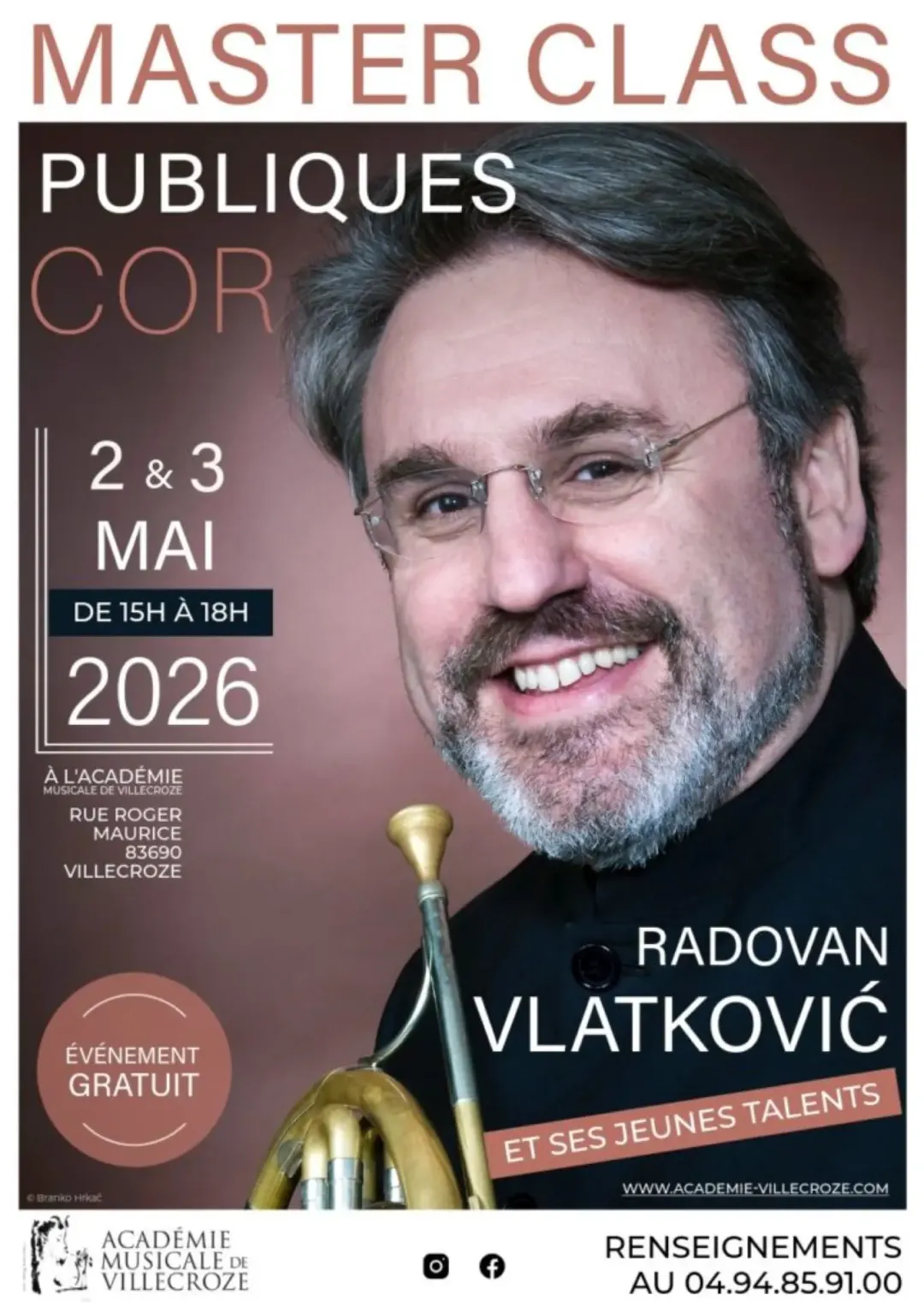 Master class publiques de cor au centre musical de l'Académie Musicale de Villecroze