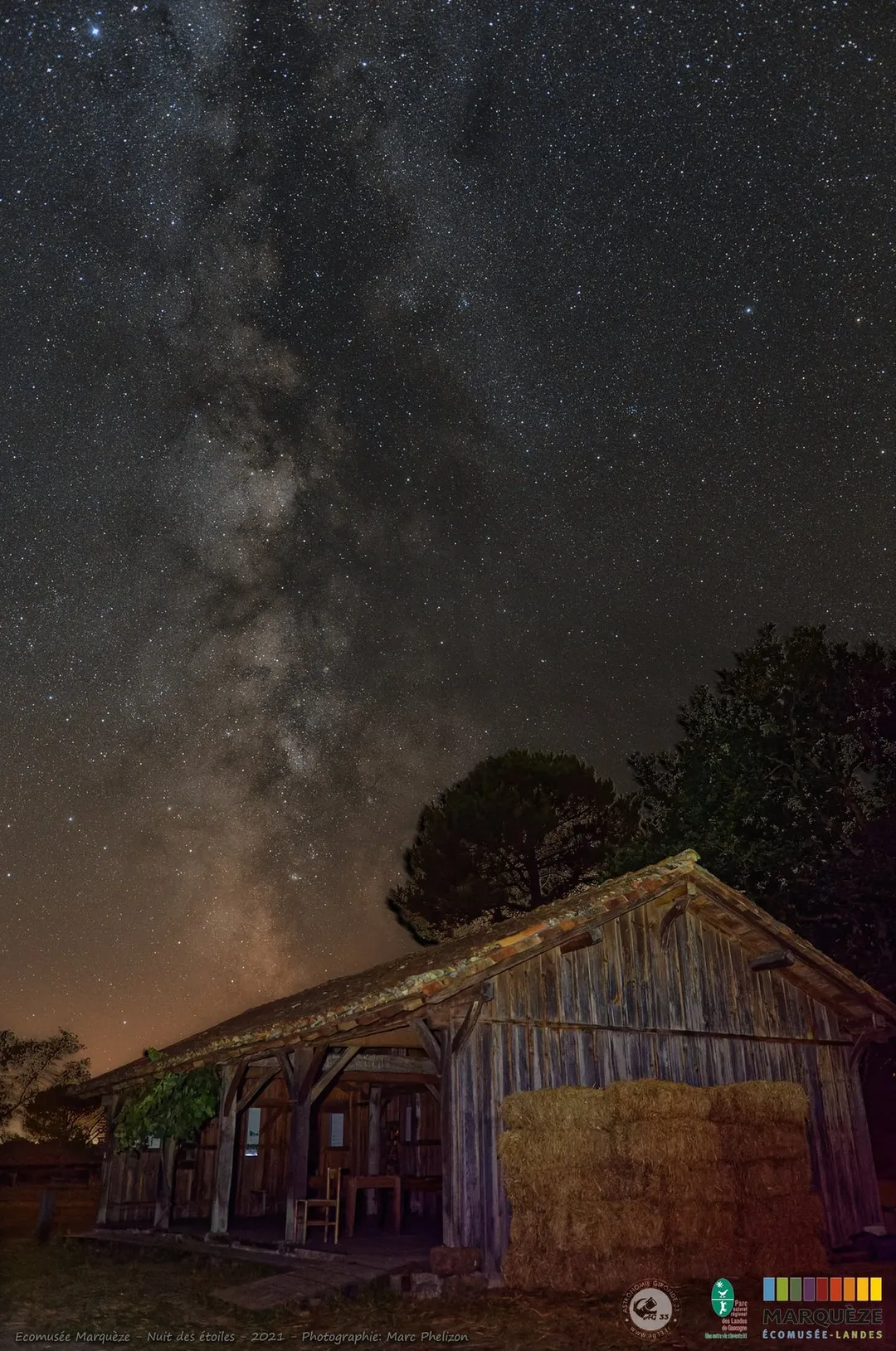 Le territoire des Landes de Gascogne est labellisé Réserve Internationale de Ciel Étoilé depuis 2025. Ce ciel d’une grande qualité s’offre à voir sur l’airial de Marquèze, en compagnie des astronomes amateurs de l’association Astronomie Gironde.