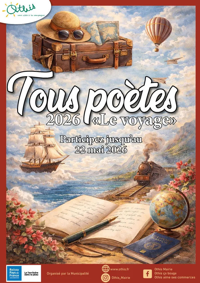Pour sa nouvelle édition de «Tous poètes» la Ville d'Othis vous propose de mettre à l’honneur le voyage au travers de jeux poétiques auxquels petits et grands sont invités à s’essayer.