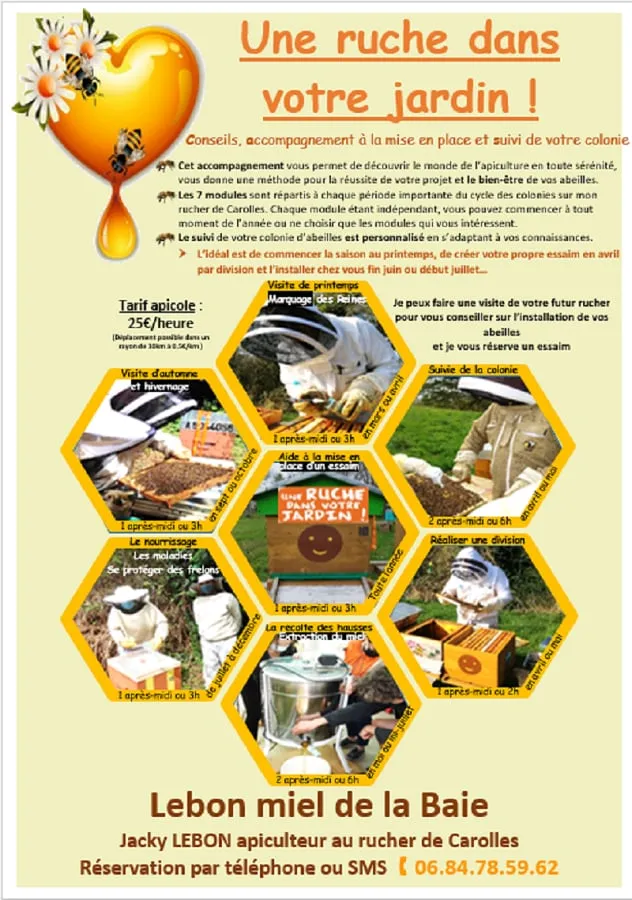 Si, comme moi, vous êtes passionné.e par la vie des abeilles, je pourrais vous conseiller et vous accompagner à la mise en place d’une ruche sur votre terrain.
