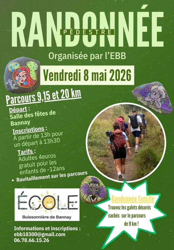 L'école buissonnière de Bannay organise une randonnée pédestre sur 3 parcours de 9,15 et 20 Km.