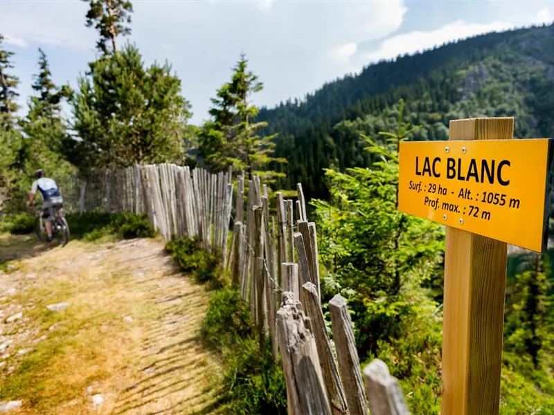 Venez prendre part à une randonnée accompagnée en VTT pour les familles à la station du Lac Blanc.