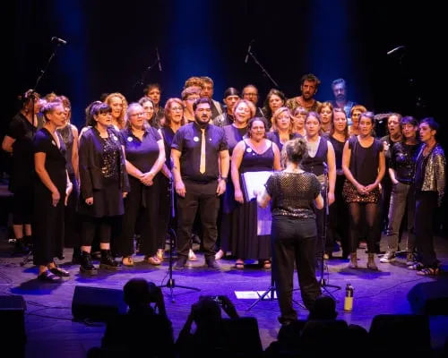 Les Golden Glottes, chœur de 30 voix, chantent a cappella ou accompagnés, explorant un répertoire contemporain allant de Stromae à Amy Winehouse ou Philippe Katerine, porté par une énergie collective communicative.