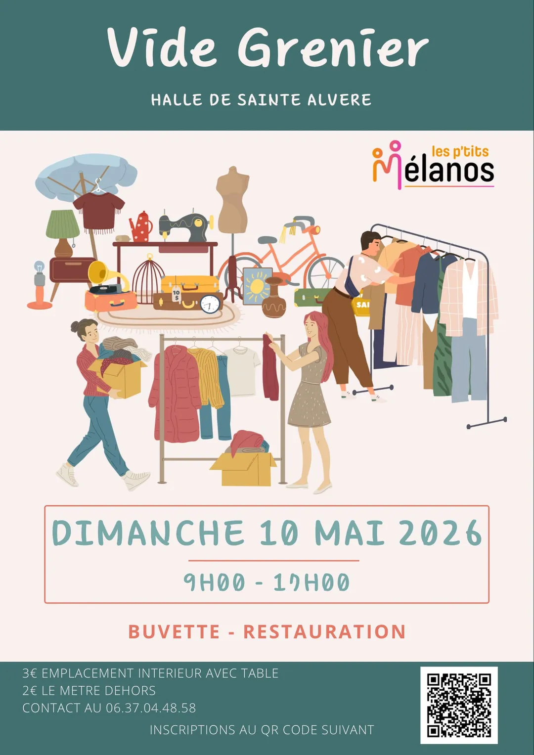 Vide-greniers organisé par l'association des parents d’élèves des écoles de Sainte-Alvère et Cendrieux dimanche 10 mai 2026 dans la Halle du Marché aux Truffes de Sainte-Alvère.