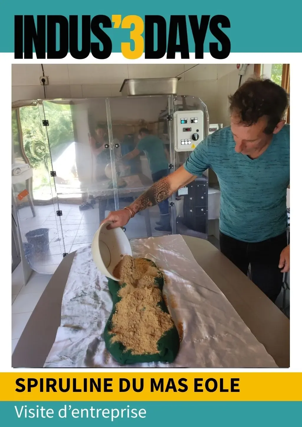 Descriptif web : Percez les secrets de la spiruline lors d'une visite guidée de la ferme aux côtés de Bruno tout en apprenant les bienfaits de ce super-aliment. A découvrir pendant la visite : - Visite guidée de l’exploitation - Explication des méthodes de culture, de récolte et de séchage artisanal - Echanges avec l’agriculteur Découvrez une production paysanne, familiale et 100% française de A à Z. Anciennement ingénieur du son, Bruno a voulu au sein de la ferme, mélanger les sons sacrés (mantras) et la récolte de spiruline afin qu’elle apporte une énergie toute particulière aux personnes qui la consomment.